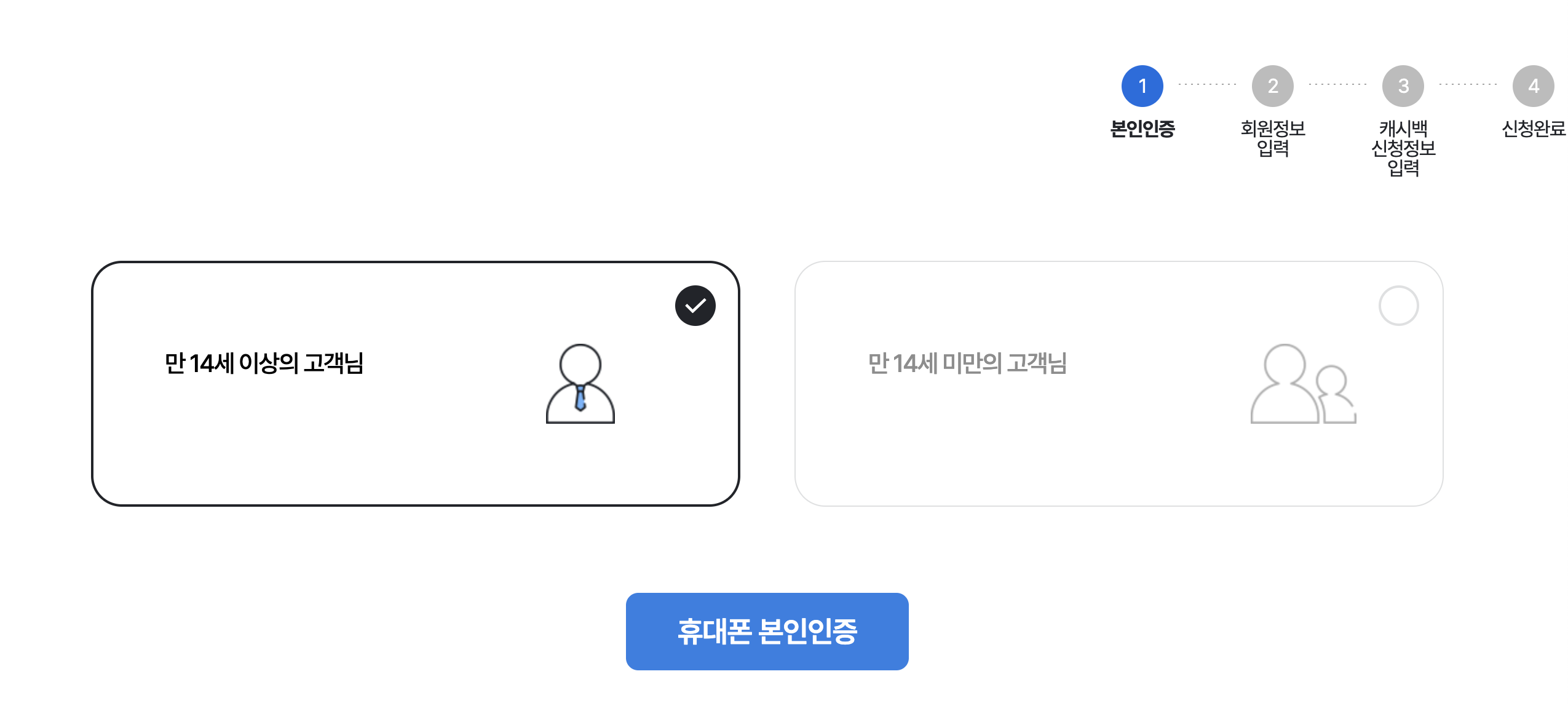 4. 본인인증 후 회원정보 입력, 캐시백 신청정보 입력을 하시면 신청이 완료됩니다.