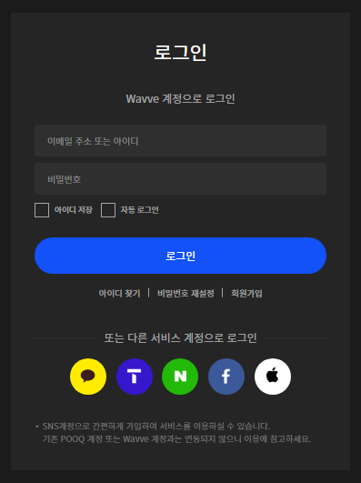 카카오톡, 네이버, 페이스북, 애플 아이디로도 가입이 가능하니 편하신 플랫폼 아이디를 이용하셔서 가입하시면 됩니다.