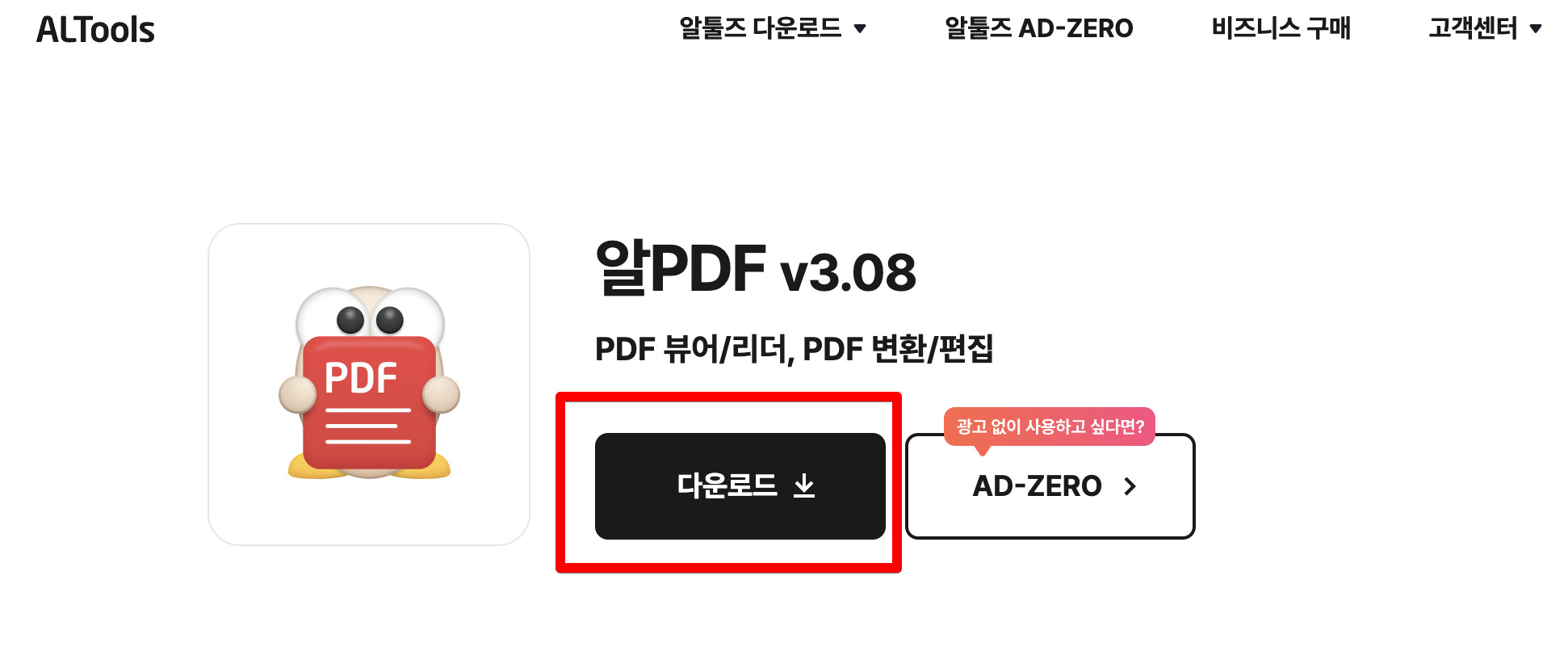1. 알PDf 홈페이지에 접속합니다.