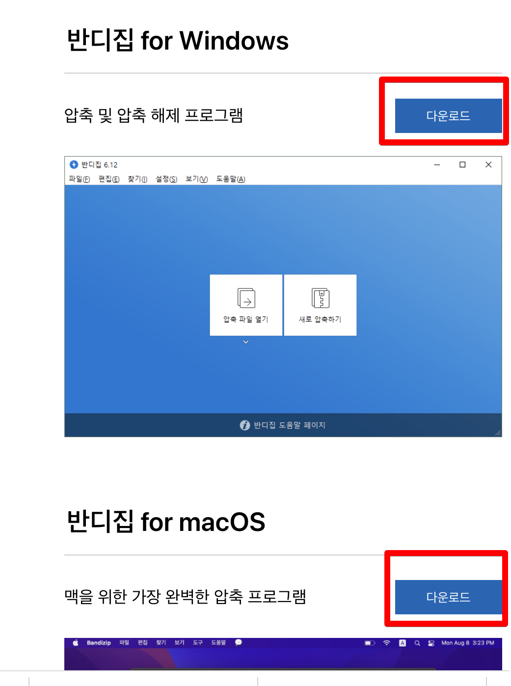 아래 설치방법을 따라 하시면 누구나 무료로 손쉽게 반디집을 설치하실 수 있습니다.