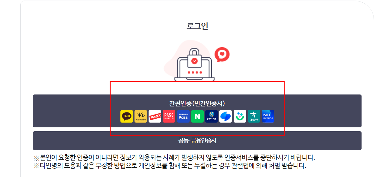 4. 인증절차를 진행해 주세요. 저는 간편 인증 서비스 PASS 인증서를 이용합니다.