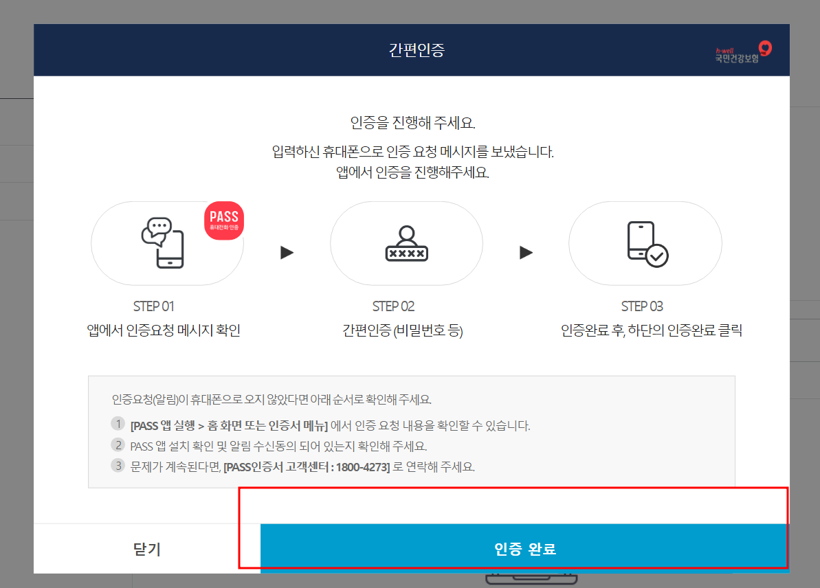 6. 휴대폰에서 인증확인 후 인증완료를 선택합니다. 간편 비밀번호로 손쉽게 인증됩니다.