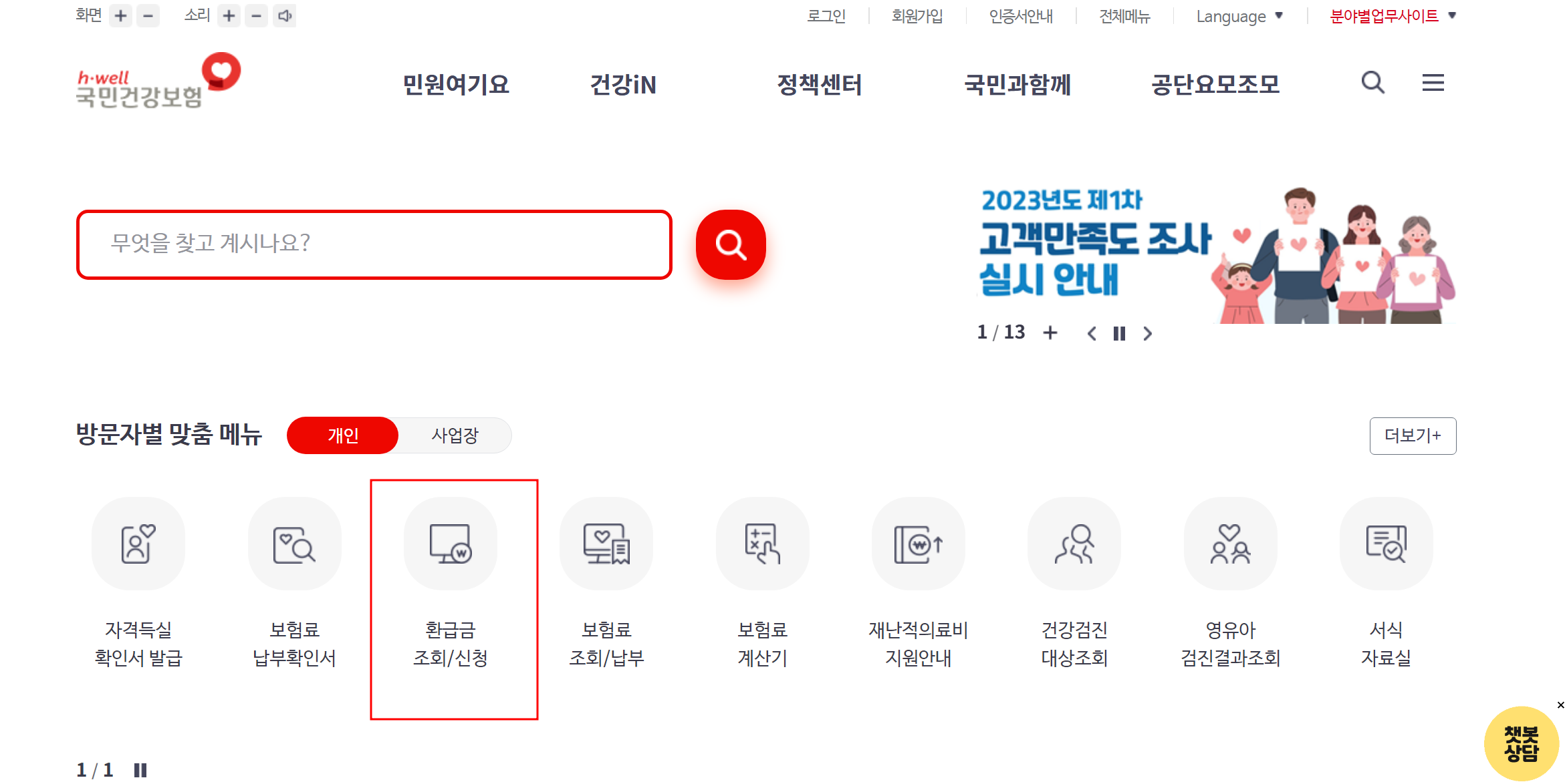 건강보험 환급금 신청을 하기 위해서는 건강보험 환급금 조회를 먼저 해야 합니다.