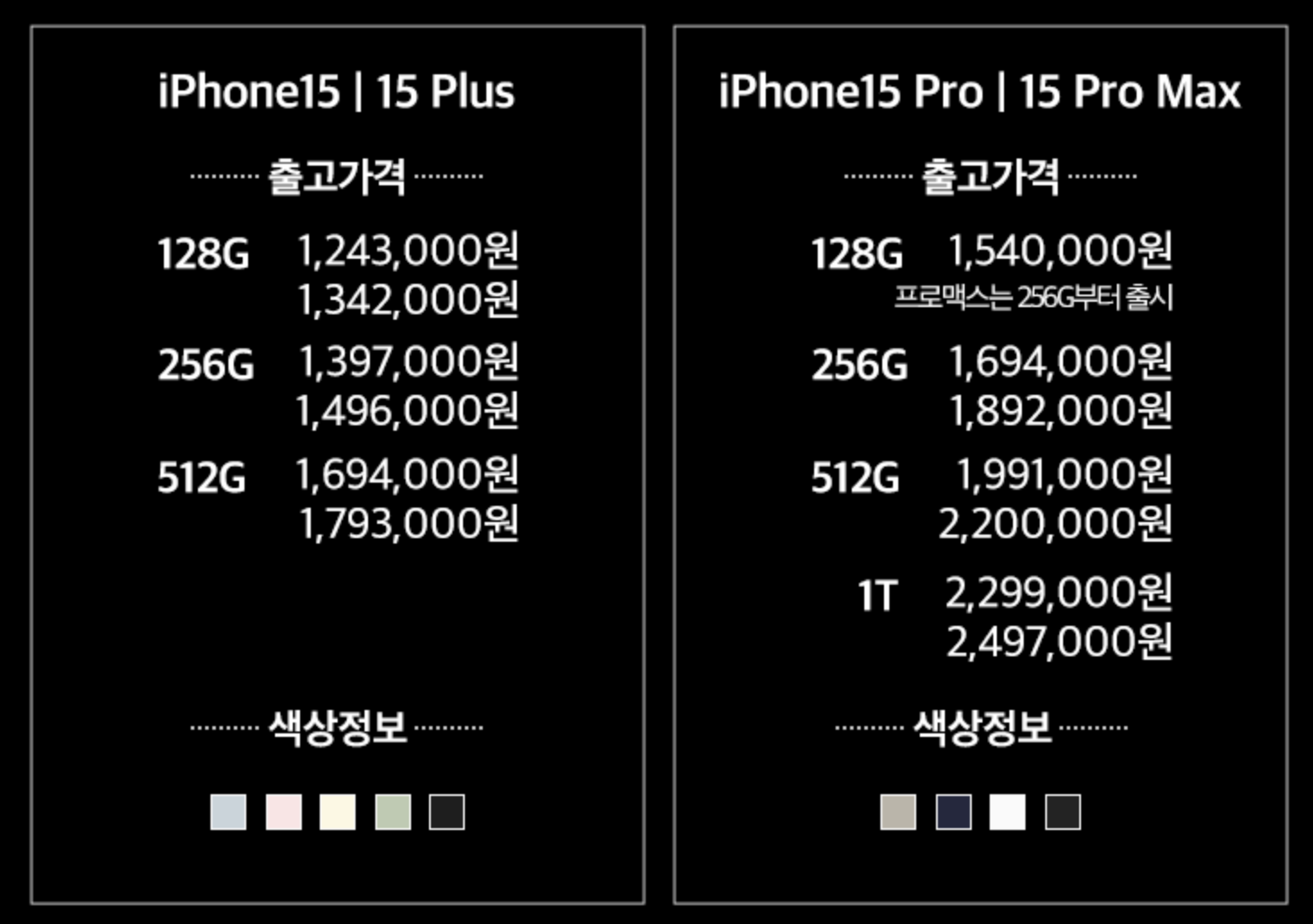 아이폰 15의 출고가격은 아이폰 14와 동일합니다.