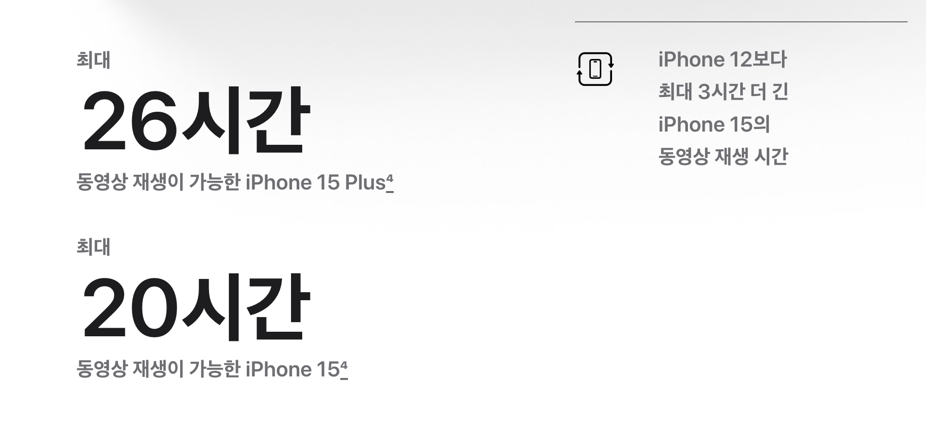 4. 아이폰 15는 배터리 성능이 좋아졌어요.