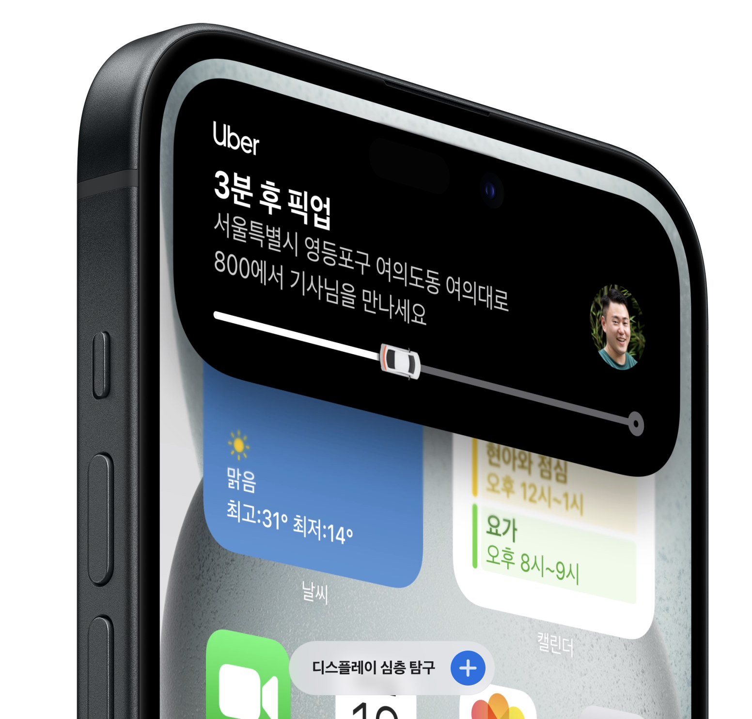 1. 아이폰 15는 M자탈모 노치가 사라졌어요.